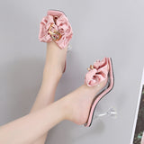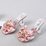 Pink Butterfly-knot Designer Sandals Clear Heels