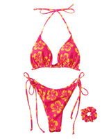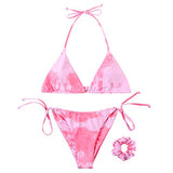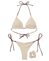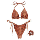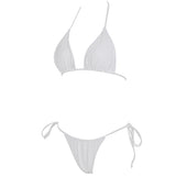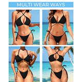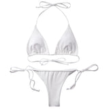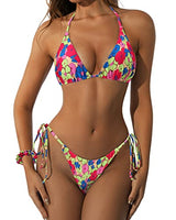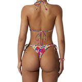 - Tie Side Thong Bikini Swimsuits: Strappy halter bikini top, Cheeky string thong bikini bottom