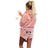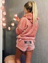 Cute Cat Meow Coral Velvet Pajamas Set β Warm Hoodie & Shorts Sleepwear for Women